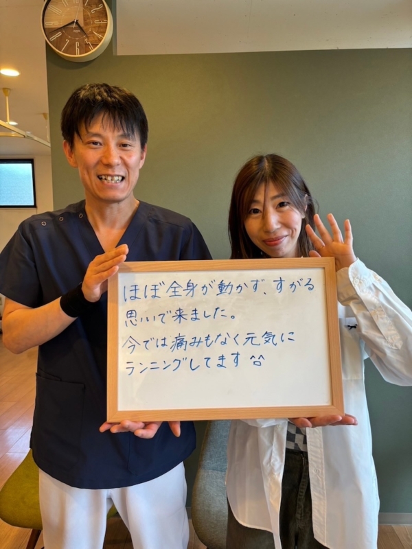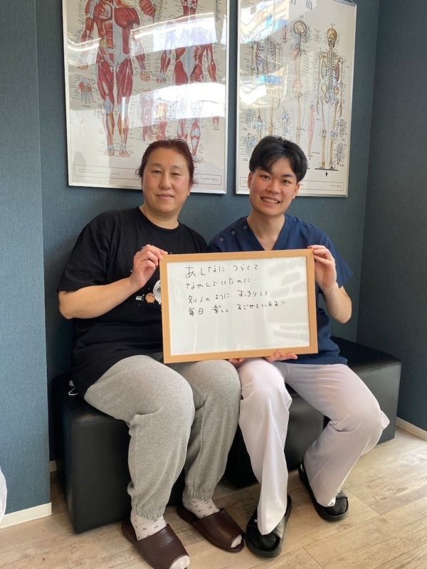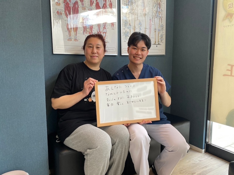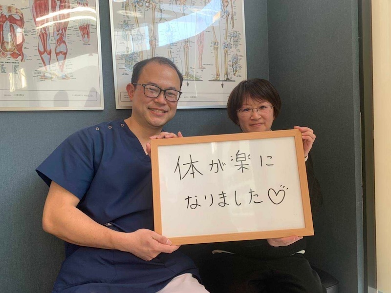 初めての時は痛すぎて大変でした。何度か通ううちに少しずつ、痛みが取れてきました。施術後は身体がとても楽になります。これから定期的に通おうと思っています。